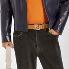 حزام مع مشبك Squared FF رفيع وتصميم مخطط مائل.مصنوع من جلد سويد (suede) باللون البيج.زينة معدنية بلمسة نهائية من البلاديوم (palladium).