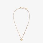 قلادة على شكل سلسلة رفيعة مع ميدالية FF.مشبك إغلاق قابل للتعديل.مصنوعة من المعدن باللون الذهبي.مزينة بحبات لؤلؤ صناعية وكريستال باللون الأبيض.