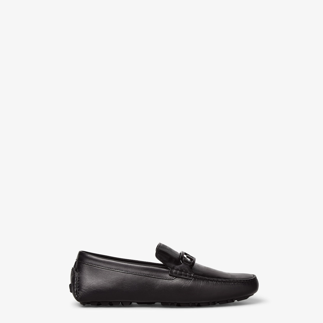 حذاء loafer مريح. نعل خارجي مرن على شكل حصى. مصنوع من الجلد باللون الأسود. يتميز بجلد Fendi Shadow مع علامة FF بدرجات مختلفة من اللون نفسه ونسيج مخطط. مشبك معدني Fendi O'Lock مطلي باللون الأسود.