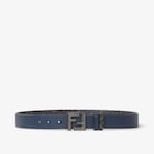 حزام يُرتدى على الوجهين مع مشبك رفيع FF Squared. مصنوع من الجلد البارز باللون الأسود. بطانة من الكانفاس مع طباعة FF باللون الأسود. زينة معدنية مطلية بلون الروثينيوم.