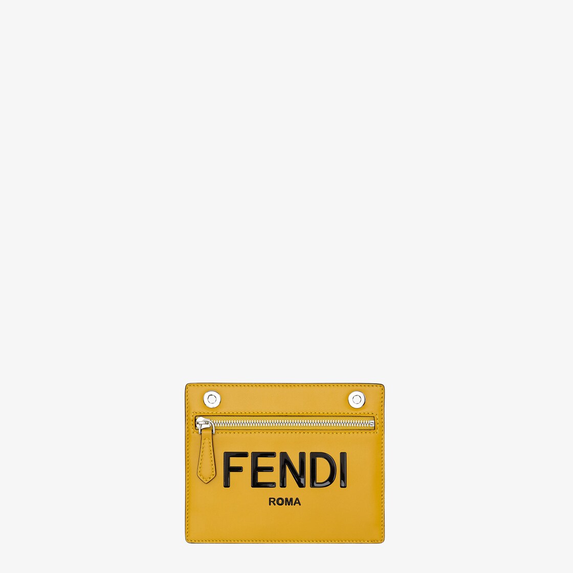 Yellow leather pocket with Fendi Roma print and reverse in PU with FF motif. Removable, interchangeable and customisable, it accessorises the interior of the Peekaboo ISeeU through the press stud fastening.