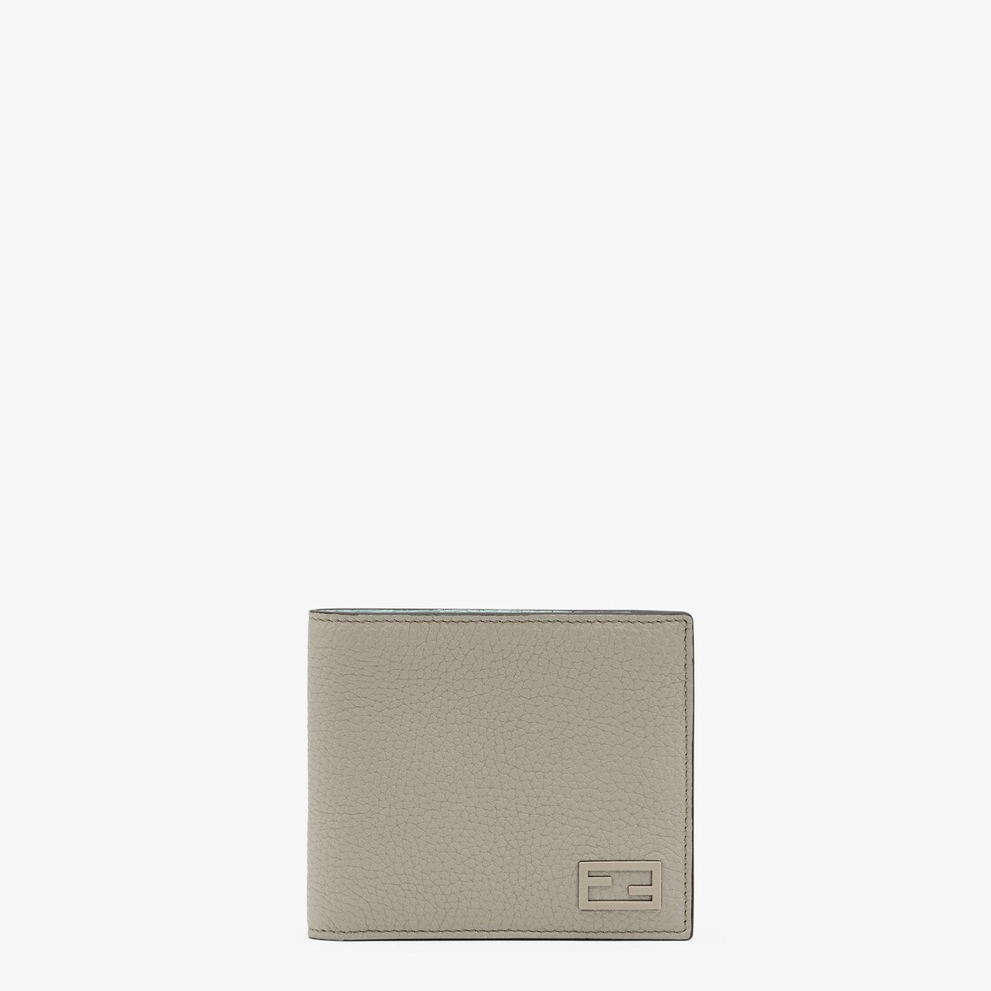 Wallet with eight interior card slots and two compartments for banknotes. Made of powder grey Cuoio Romano leather with contrasting light blue lining. Tone on tone varnished metalware.