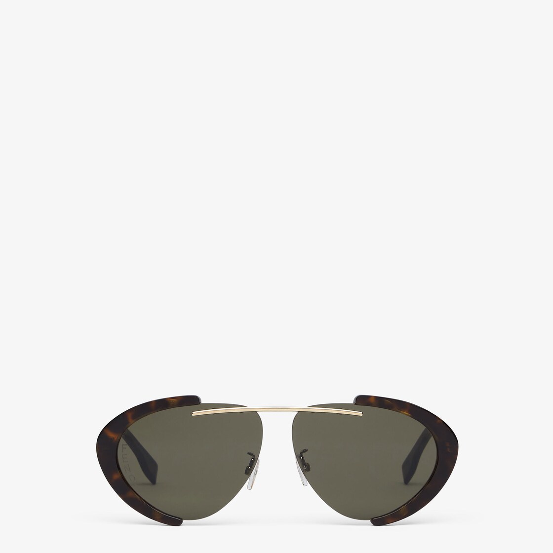 Presented in the Spring/Summer 2022 fashion show, these pilot style sunglasses feature dark green lenses and a brow bar on the sides in Havana-colour acetate. Bridge and temples in gold-colour metal. Adjustable nose pads.