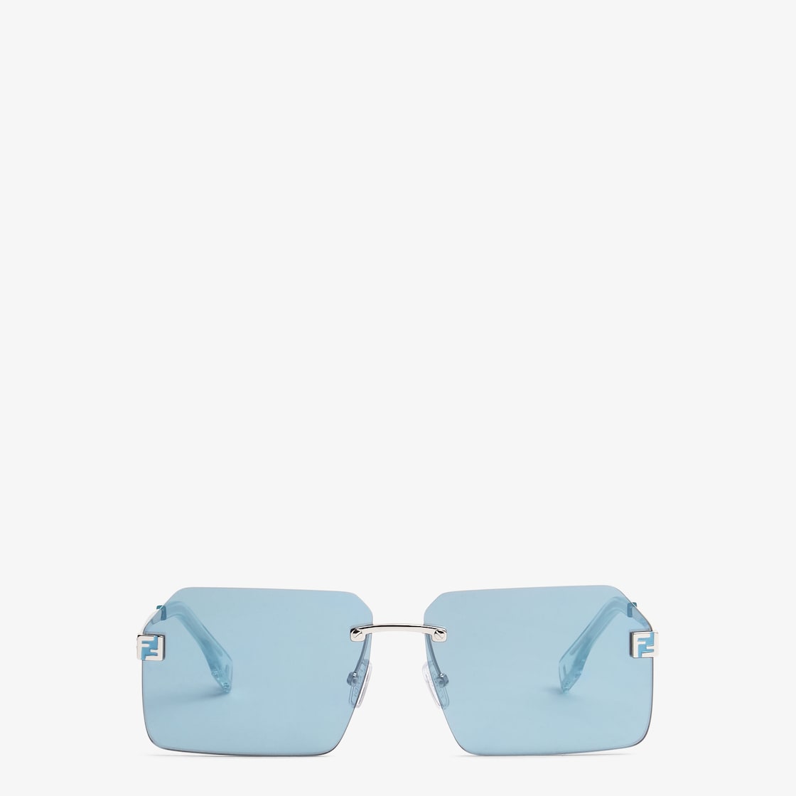 These rectangular sunglasses were presented in the Spring Summer 2022 fashion show and feature light blue-mirrored lenses and exclusive branded hinges in 3D metal. Temples in palladium-colour metal. Adjustable nose pads.
