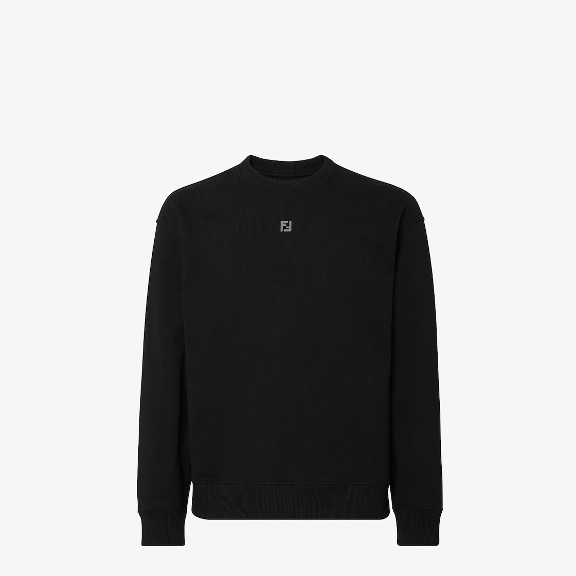 sweatshirt برقبة مدوّرة وأكمام طويلة. مقاس واسع بتصميم مضلّع على الرقبة، وأطراف الأكمام، والطرف. مصنوع من القطن النقي باللون الأسود. مزيّن بشعار FF معدني بلمسة نهائية من البلاديوم (palladium) على الجهة الأمامية.