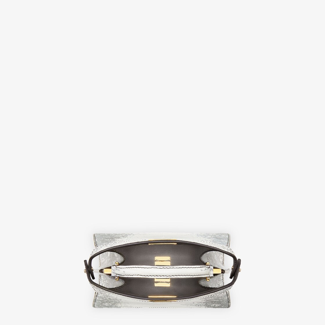 حقيبة Peekaboo ISeeU أيقونية بحجم مصغر مثالي. مصنوعة من جلد سحلية بلون صخري ومزينة بقفل لف كلاسيكي على كلا الجانبين.