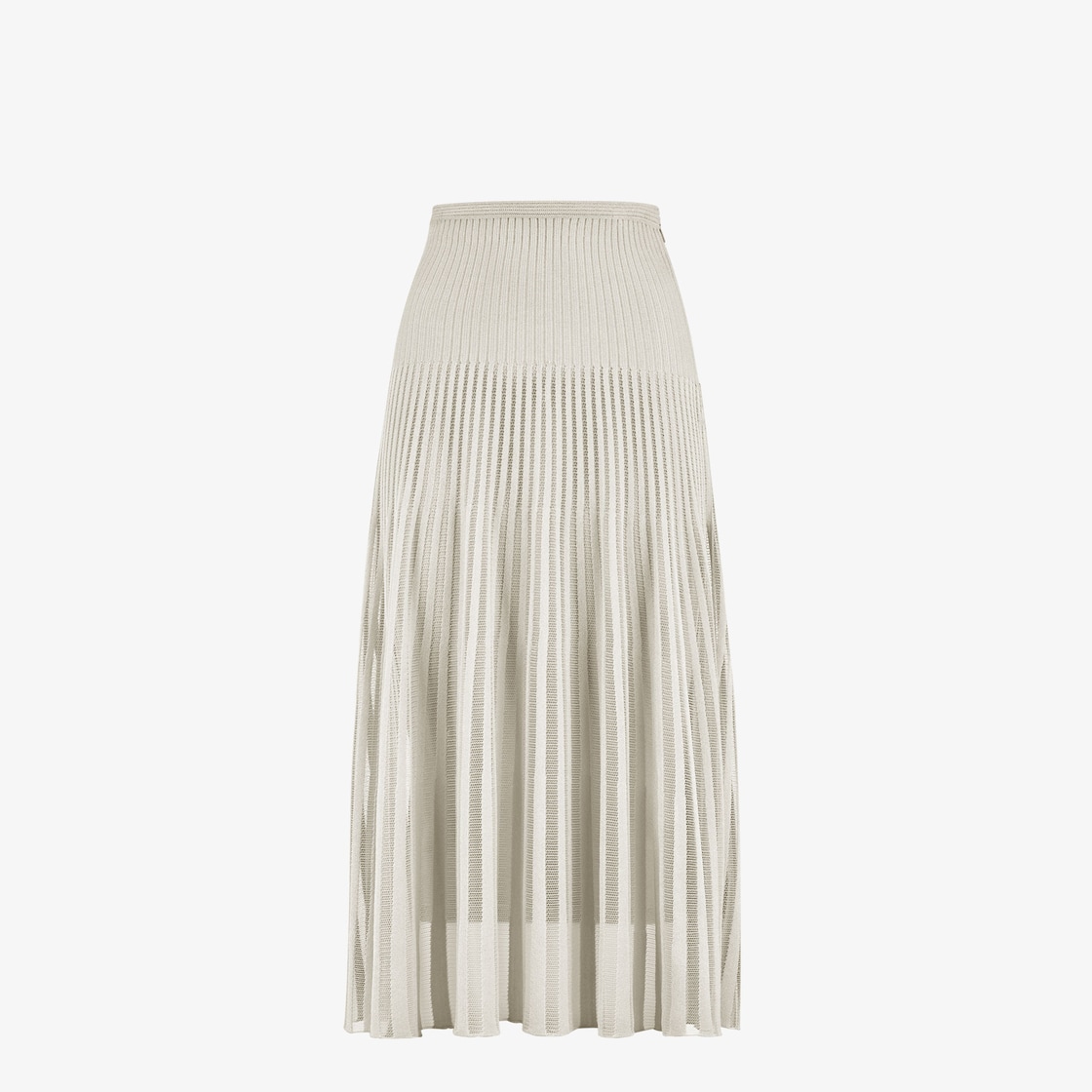 Flowing midi skirt with fitted waist. Side zip fastening. Lined. Made of grey viscose with nylon inserts that create a sheer effect.