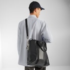 Can be carried by hand thanks to the webbing and leather double handles or worn on the shoulder or cross body using the technical fabric, adjustable, detachable strap with sliding metal FF buckle.