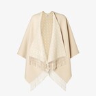 Large, enveloping poncho with fringed-edge finish. Made in an luxurious wool and cashmere blend double-sided fabric in a camelia colour. The underside is customised with an eye-catching contrasting FF Diamonds motif all over and Fendi lettering on the hem.