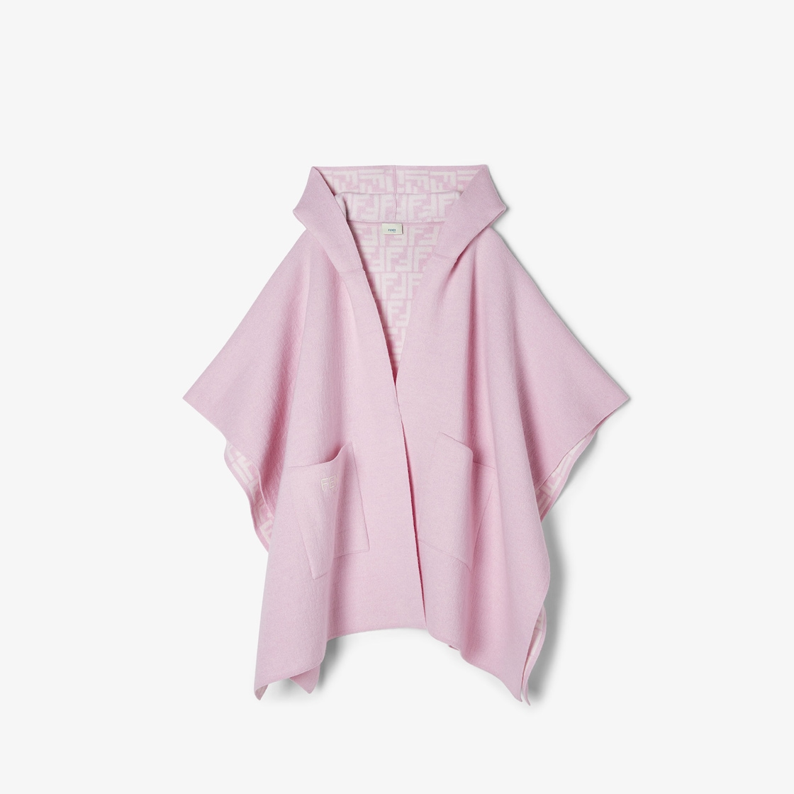 Junior reversible knit cape. One side is pink with pockets and Fendi embroidery and the other features the all-over FF logo in white.