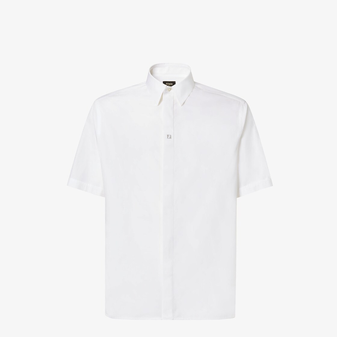 Shirt with Italian-style collar and short sleeves. Boxy fit. Concealed button fastening. Made of white cotton. Customised with palladium metal micro FF detail on the front.