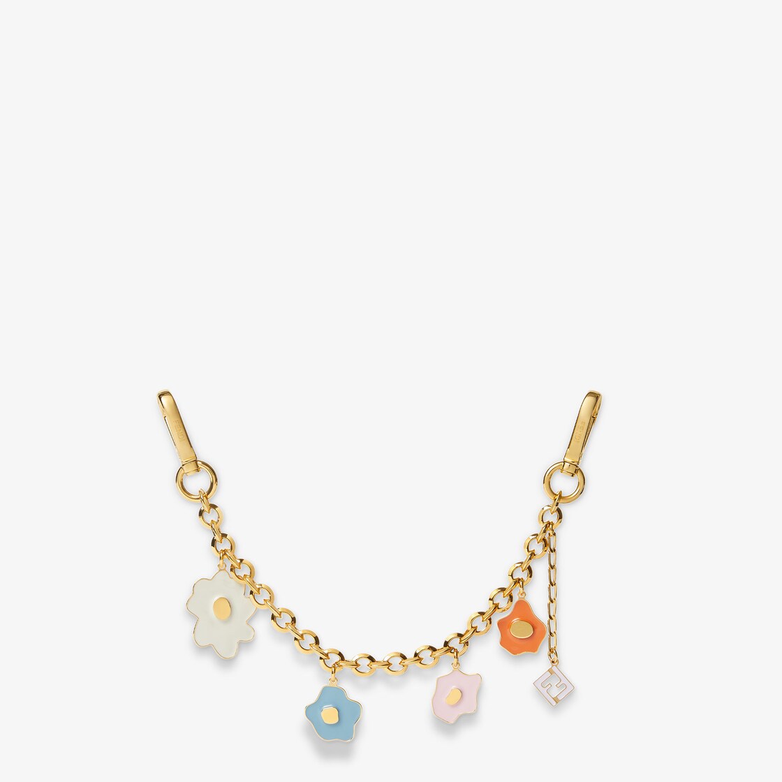 Anhänger mit doppeltem, personalisiertem Karabinerhaken. Dekoriert mit floralen Sunny Side Flowers Elementen aus Metall, mehrfarbigem Emaille und einem Anhänger mit FF Squared-Logo. Beschläge aus Metall mit Finish in Gold-Optik.