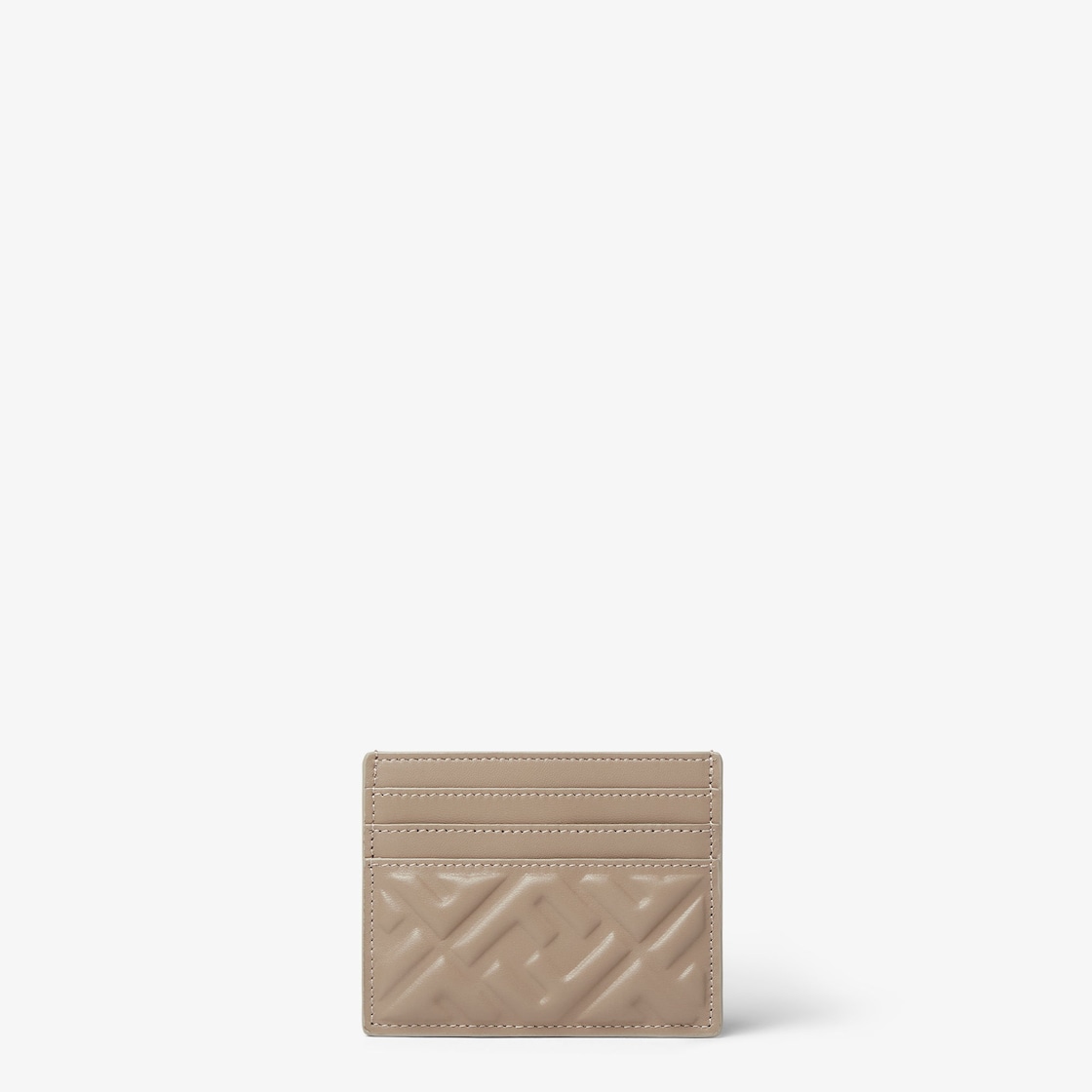 Flaches Kartenetui aus Nappaleder in Taupe mit FF-Motiv