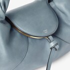 Verschluss mit abgerundeter Klappe, die eine Münztasche verbirgt, mit Einfassung aus Metall und einem geknoteten Ton-in-Ton-Lederband. Mit heißgeprägtem, goldfarbenem FENDI Roma Logo.