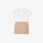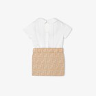Baby-Kleid mit Bluse aus Popeline in Weiß mit Rüschen und Rock aus Jacquard-Stoff in Beige mit durchgehendem, farblich abgestimmtem FF-Logo.