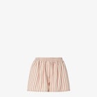 Shorts mit elastischem Bund und paspelierten Seitentaschen. Aus FF-Denim in Beige mit vertikalem Streifenmuster in Rot. Mit Maxi-Patch aus Leder in Braun mit FF Selleria Detail in Rot auf der Rückseite.