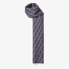Rechteckiger Schal aus FF-Micro-Jacquard aus Wolle in Hellgrau und Blau. Mit kleinen Fransen in Weiß am Ende.