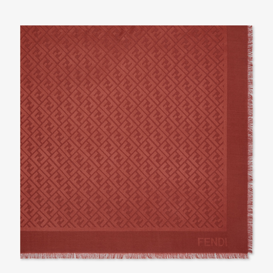 Das ikonische Schultertuch von Fendi ist aus einer Mischung aus Bio-Seide und Wolle in einem speziellen Terra di Siena Farbton gefertigt. Die hochwertige Jacquard-Verarbeitung bildet ein FF-Muster. Leichtes Schultertuch zum Einhüllen zu jeder Jahreszeit.