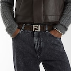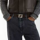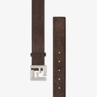 Gürtel mit schmaler Squared FF-Schnalle. Hergestellt aus Wildleder in Dunkelbraun. Innenseite aus Leder in Hellbraun. Beschläge aus Metall mit Finish in satinierter Silber-Optik.