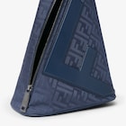 Large Fendi Cono one-shoulder backpack made of dark blue padded FF Nylon, with a lustrous and lightly embossed texture. Embossed macro F motif, base and details in smooth dark blue calfskin. Asymmetric zip fastening.