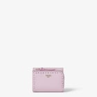 Compact Peekaboo tri-fold wallet, with a large internal compartment for banknotes, card slot and a long knotted zip pull. Made of lilac Cuoio Romano leather and finished with 82 hand-sewn tone-on-tone topstitches, an emblem of the iconic Selleria stitching handed down through generations of Fendi artisans since 1925. Palladium-finish metalware and metal FENDI logo.
