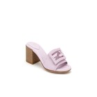 Wide-band slides. Made of dove grey tumbled leather and embellished with hand-sewn tone-on-tone macro topstitches, an emblem of the iconic Selleria stitching handed down through generations of Fendi artisans since 1925. Tone-on-tone FF Baguette motif. Broad, leather-covered heel.