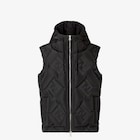 Padded gilet with drawstring hood and side pockets. Zip fastening with double slider. Made of black technical fabric with an embossed-effect, all-over diagonal FF Jacquard motif. Palladium-finish metalware.