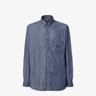 Comfort fit shirt with button-down collar and long sleeves. Patch pocket on the chest. Visible button fastening. Made of blue cotton chambray. Embellished with FF detail embroidered on the front pocket.