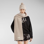 Rectangular scarf in a luxurious blend of two-tone, ivory cashmere and wool, featuring a 3D-effect herringbone motif. Ivory leather patch with embossed Fendi Roma logo and Selleria-inspired macro stitching on the hem.