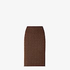 Straight-cut midi skirt featuring long, contrasting zips on both sides. Made of shiny brown viscose yarn, crafted with an all-over cable-knit motif. Finished with ribbed edges.