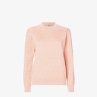 Regular fit jumper with crew neck and long sleeves. Made of wool and silk yarn with the iconic FF motif woven all-over in a dark blue denim-effect jacquard. Finished with ribbed edges.