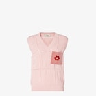 Regular-fit V-neck gilet. Made of light pink cotton yarn, entirely crafted in a crochet knit. Decorated with a mink Sunny Side Flowers pocket applied on the chest in pink and red.