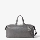 Light medium-size 45 cm Fendi Lui duffel bag, made of grey ostrich leather. Featuring FF metal appliqués on the corners. Designed for practicality while travelling, thanks to a long double-slider zip fastening. The press studs on the sides allow adjustment of the shape and capacity.