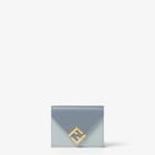Medium FF Diamonds tri-fold wallet, geometric flap and diagonal FF logo. Divided into six card slots, a banknote compartment and a coin pocket with a press stud button. Made of yellow and beige calfskin. Gold-finish metalware.