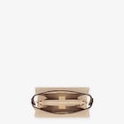 Featuring a soft, tone on tone nappa leather lining, two compartments separated by a stiff partition, an inner pocket and gold-finish metalware.