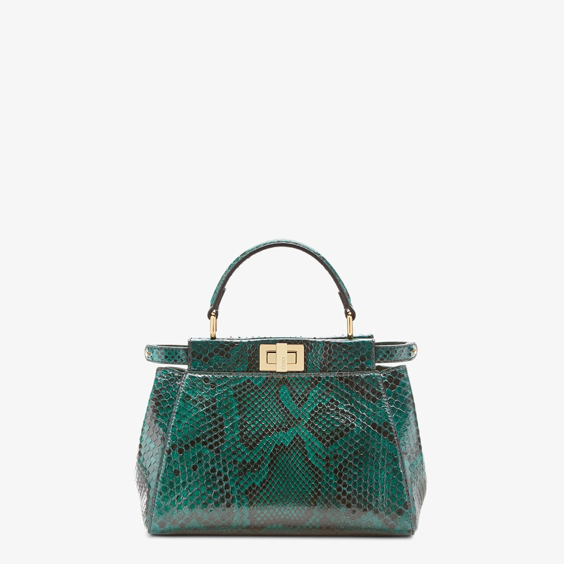 Iconic small Peekaboo bag made of exquisite glossy green python leather and embellished with the classic twist lock on both sides.