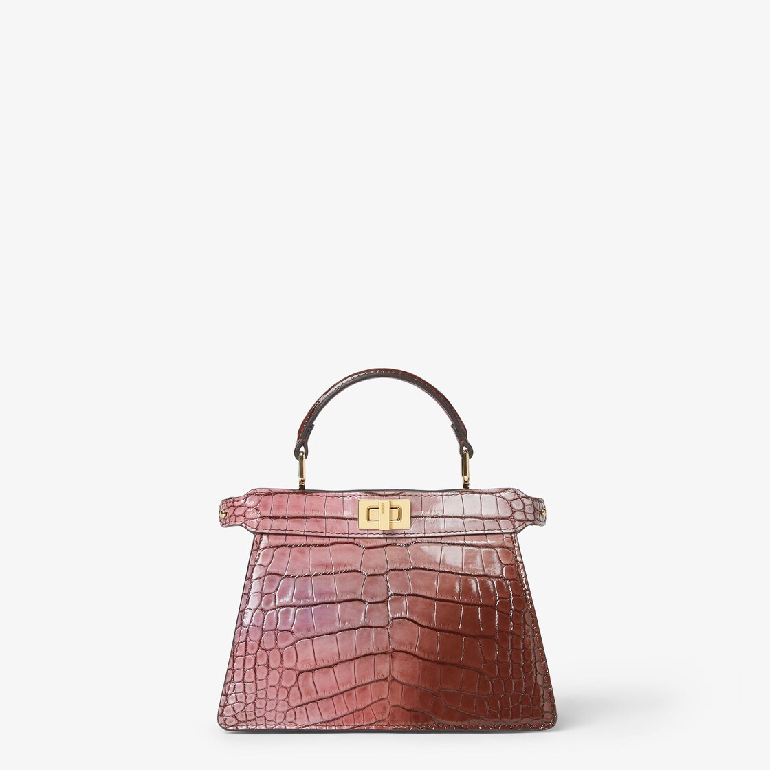 奢华鳄鱼皮材质,手工喷绘以呈现粉红色调渐变效果。独特的颜色渐变效果,因手袋而异。