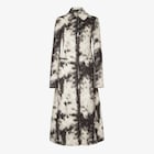 Long, slightly flared coat. Shirt collar, long sleeves and horizontal welt pockets. Concealed front fastening. Made of long-haired wool with an exclusive Frosted Fauna motif printed all over: a nuanced reinterpretation of the timeless black and white animalier print, inspired by an archive coat by Silvia Venturini Fendi.