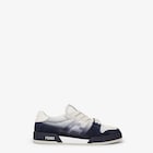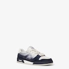 Sneakers à lacets Fendi Match. En cuir grainé blanc avec détails en cuir suédé bleu et effet dégradé. FF semi-transparent cousu sur les côtés. Semelle en caoutchouc avec inscription Fendi sur le côté.