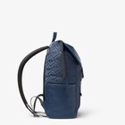 Sac à dos Fendi Flux en nylon FF rembourré bleu foncé, à la texture brillante et légèrement en relief. Rabat en cuir de veau lisse bleu foncé, orné d’un fermoir Tuck en métal en forme de FF.