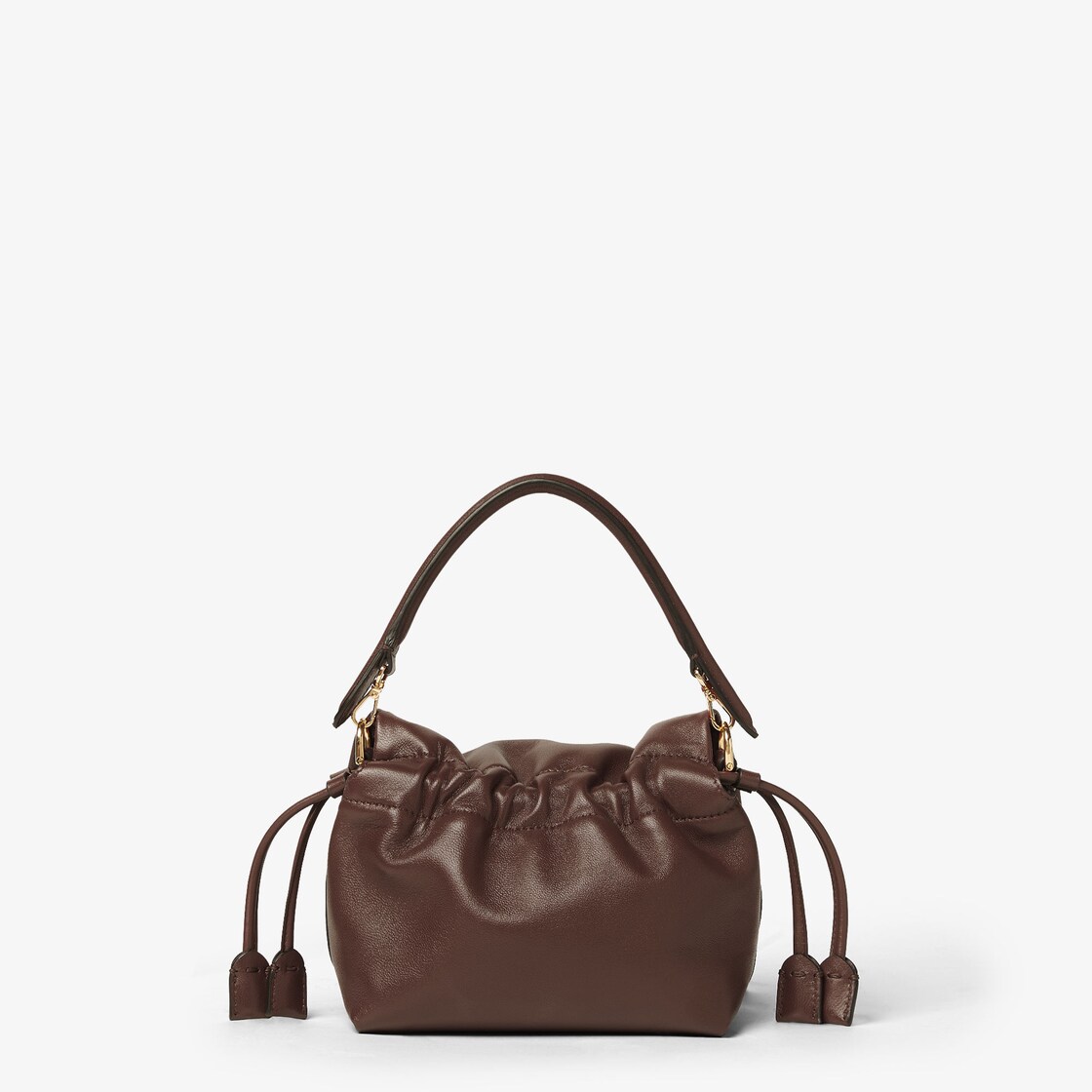 En cuir nappa acajou souple, orné du fermoir FF et d’un détail en cuir ton sur ton.