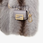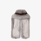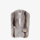 Grande étole avec ceinture multifonction en cuir dans les mêmes tons. En renard gris. Doublure soie ton sur ton. Garnitures en métal finition dorée.