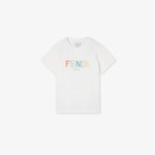 T-shirt enfant en jersey blanc avec inscription Fendi multicolore brodée sur le devant.