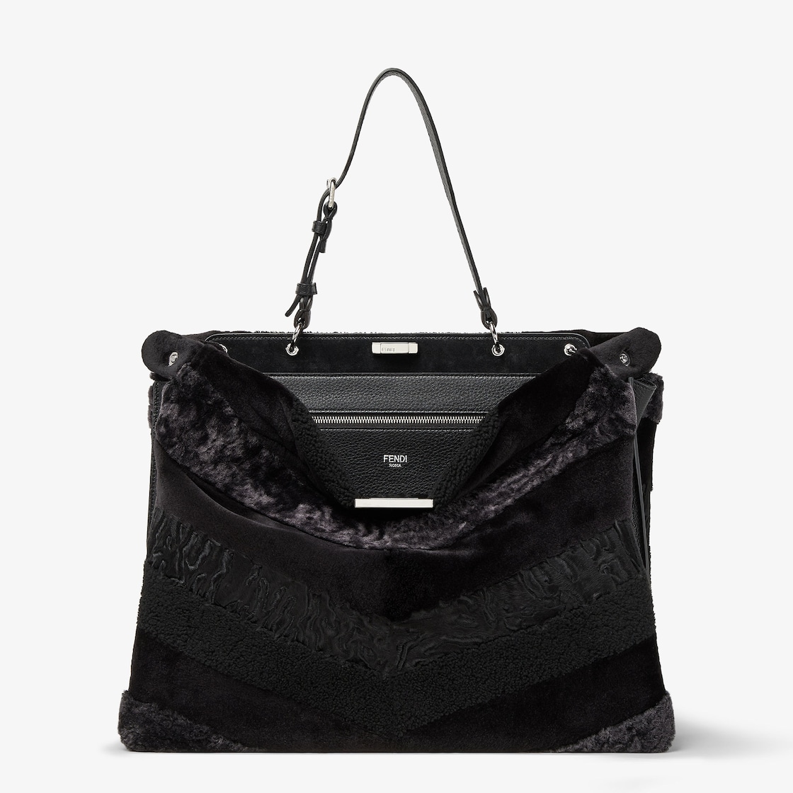 Sac Peekaboo Soft Maxi à la construction flexible et légère, réalisé dans un mélange doux de vison, swakara et peau de mouton retournée incrustés à la main pour créer un motif chevron noir.
