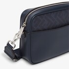 حقيبة كتف صغيرة مصنوعة من الجلد الناعم باللون الأزرق الداكن وكانفاس مع طباعة FF بدرجات مختلفة من اللون نفسه.مزيّنة بعلامة FF معدنية.