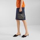 مصنوعة من الجاكار مع طباعة FF بتأثير الدنيم باللون الأزرق الداكن، ومزينة بمشبك FF مع زيادة من الجلد باللون الأسود.
