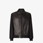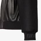 بلوزون برقبة قميص وأكمام طويلة.الطرف وأطراف الأكمام مضلّعة محبوكة ومطاطية.جيوب عمودية جانبية مخفية.إغلاق مخفي على الجهة الأمامية.مصنوع من الجلد باللون الأسود.أكمام من الصوف المحبوك بلون متناسق وعلامة FF بحبكة أنتارسيا على الأطراف.