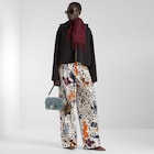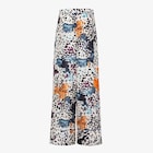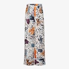 سروال بيجاما بخصر عالٍ وطيّة مزدوجة في الجهة الأمامية.جيوب جانبية وطرف من قماش مزدوج.إغلاق بسحاب ومشبك.مصنوع من تفتا (taffeta) الحرير باللون الأبيض مع طبعة Falena عليه بالكامل باللونين الأسود والبرتقالي.