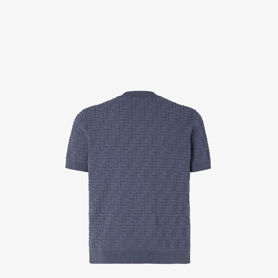 كنزة برقبة مدوّرة وأكمام قصيرة. مقاس عادي. مصنوعة من نسيج الدنيم القطني باللون الأزرق. تتميز بدرزات FF Selleria عليها بالكامل بلون متناسق. مزيّنة بأطراف مضلّعة.
