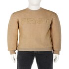 كنزة مقاس عادي برقبة مدوّرة.مصنوعة من نسيج الصوف باللون الرمادي الفاتح بحبكة فيشرمان مضلّعة.الجهة الأمامية مطرزة بحروف Fendi Roma كبيرة من النسيج بلون متناسق.